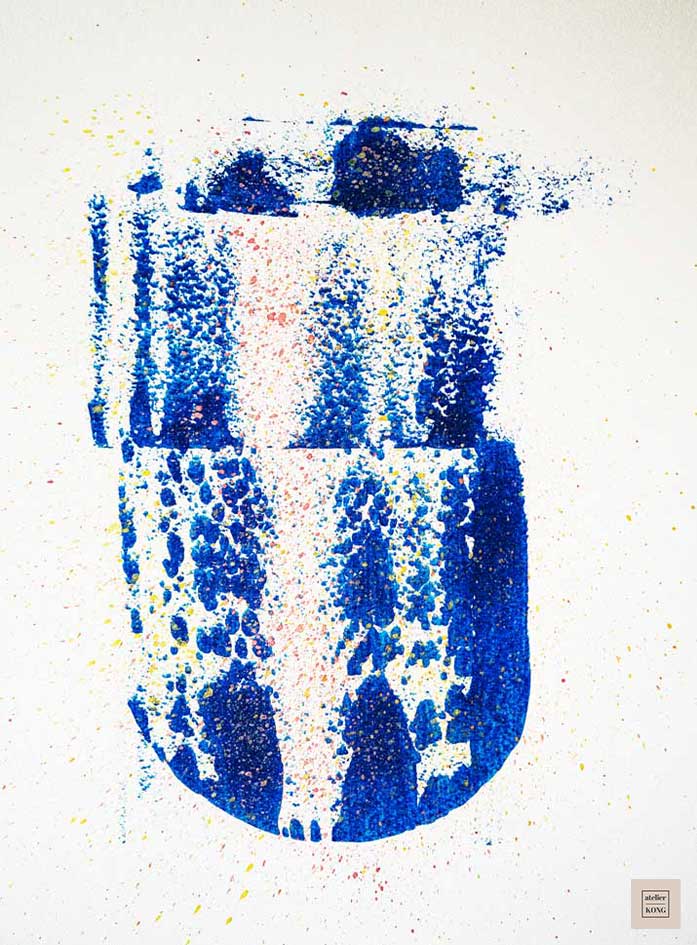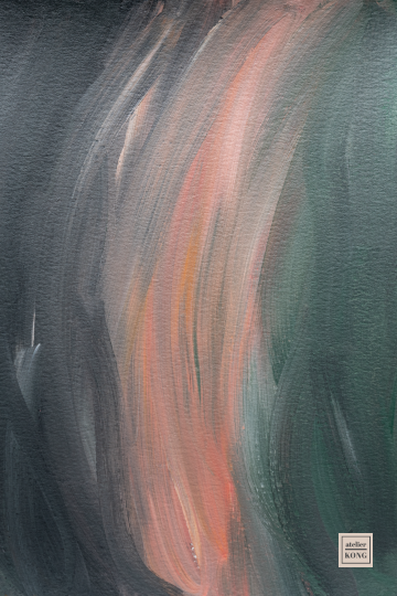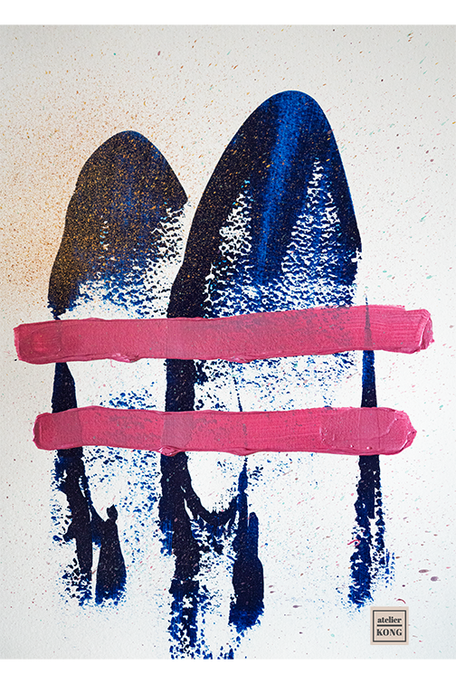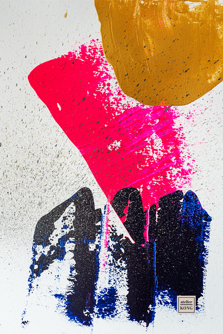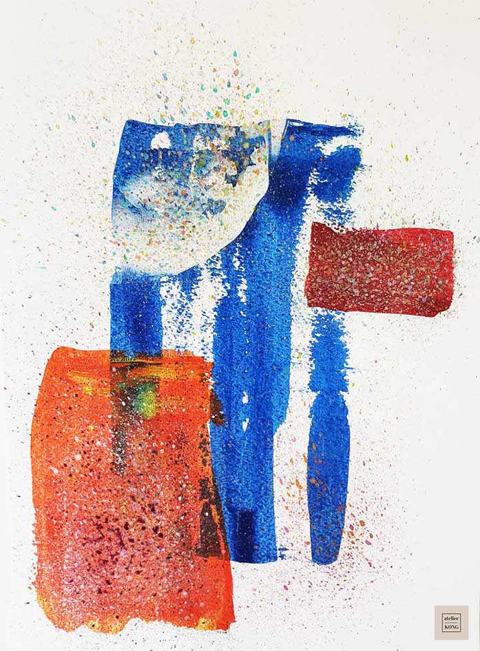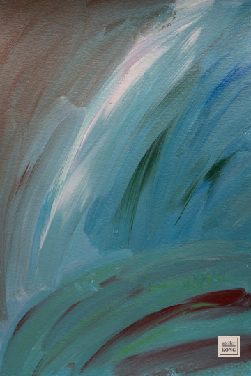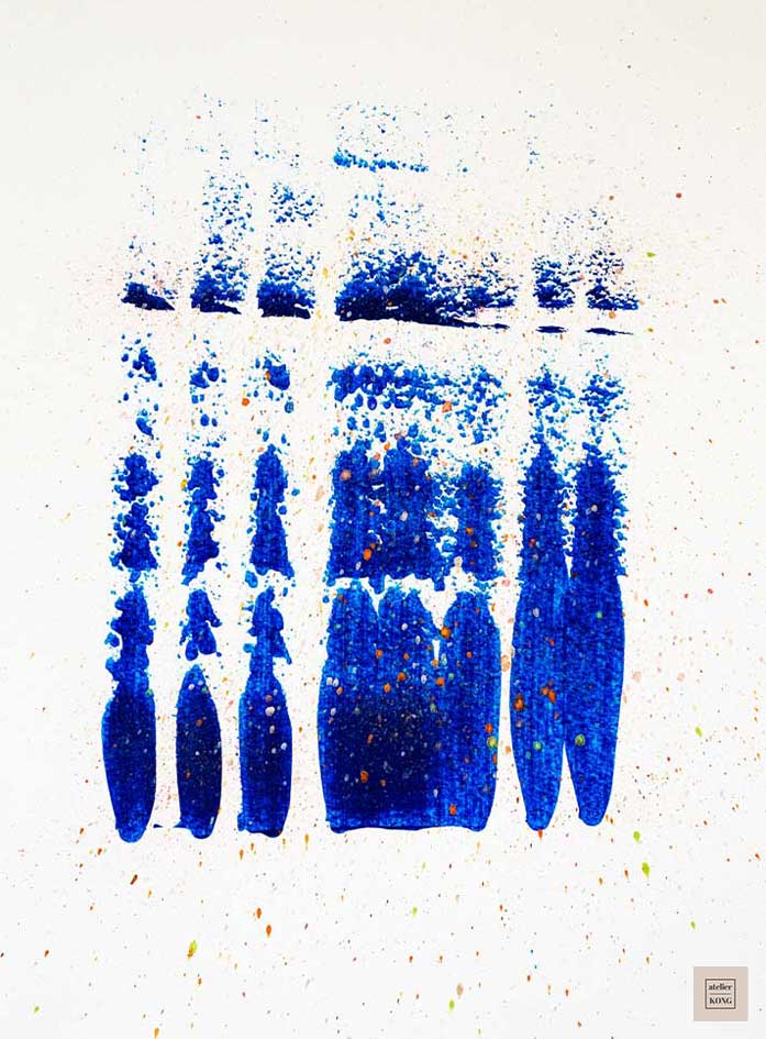 Watercolors and iridescent watercolors on white watercolor paper and black drawing paper. Various sizes.