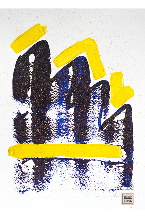 Watercolors and iridescent watercolors on black drawing paper. Various sizes.