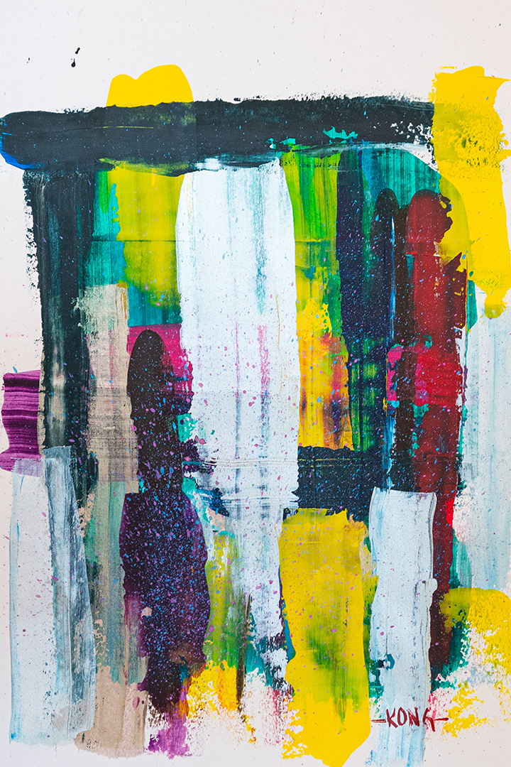 Acrylic paint on paper. 11-3/4 x 16-1/2in